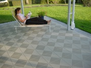 Bergo Nova™ – покрита подова плочка с грапава текстура, подходяща за балкони, вътрешни дворове, малки домашни гаражи, складове, мазета, мокри помещения като сауни, басейни, душ зони, перални и др. Bergo